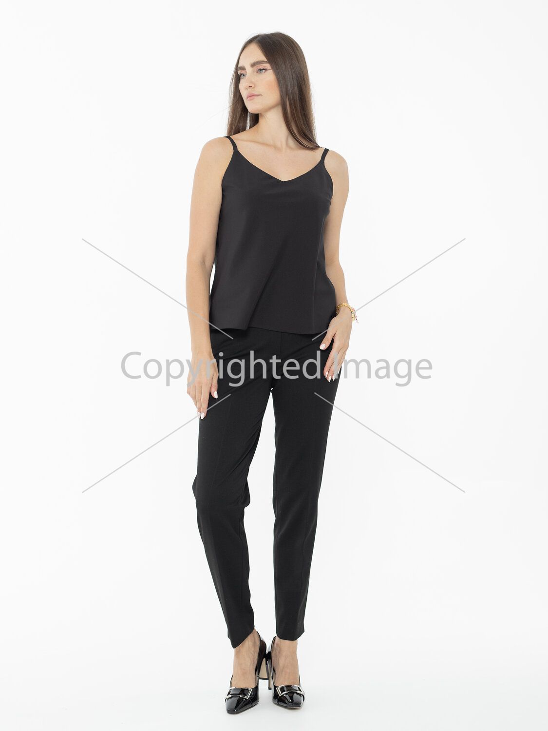 Women's top with a loose fit is made of light blouse fabric with straps with a regulator, it is relevant at any time of the year, it belongs to the basic elements of the wardrobe, which is suitable for everyday and business use styles. Perfectly combined with all types of jackets, skirts and trousers.